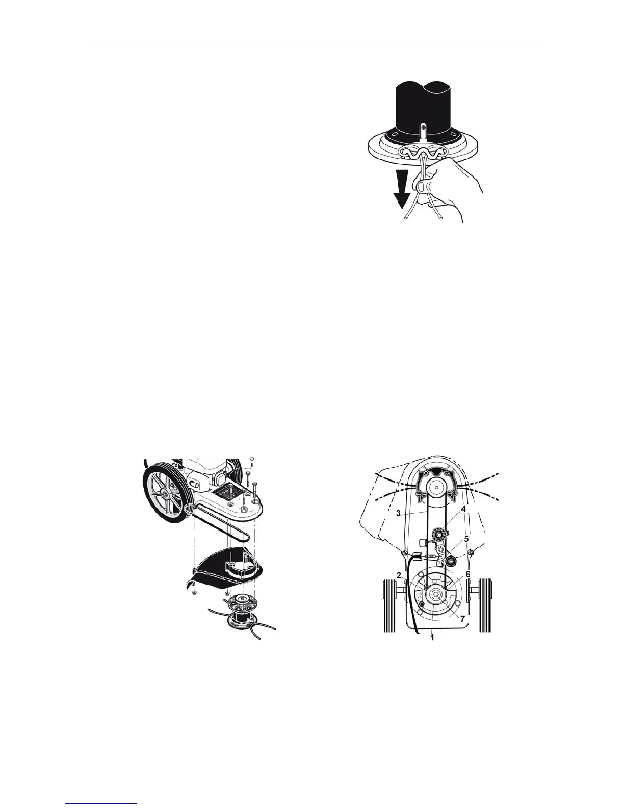 To replace the drive belt you must first remove the trimmer head and the protective guard. Do as follows: