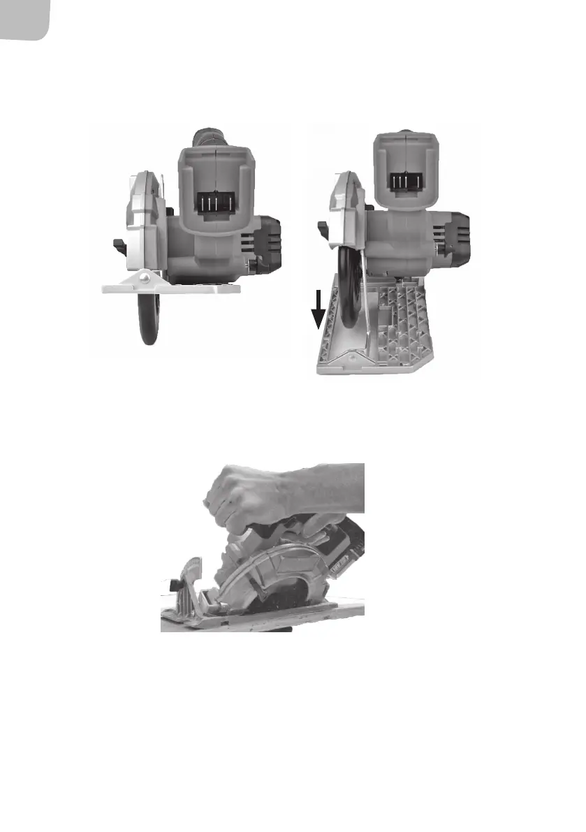 3. Trykk inn låseknappen. OBS! Sirkelsagen har to låseknapper, en på høyre side og en på