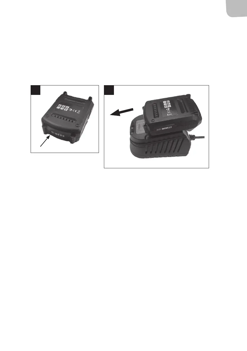 • Use the "Press" button (diagram 1) on the battery to check the charging status; 1-4 red LEDs,