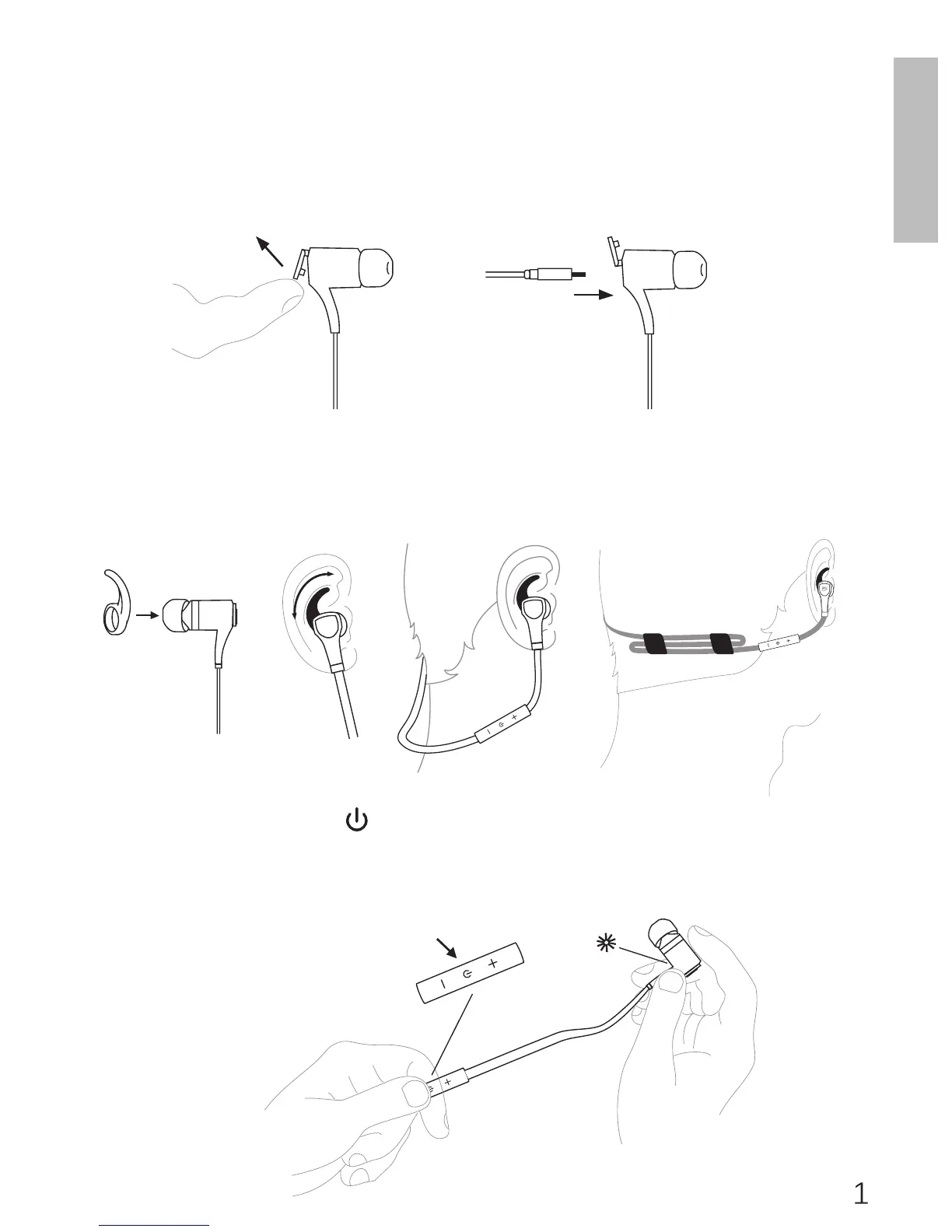 Try all three sizes of ear tips to find the best fit. Install the supplied stabi-