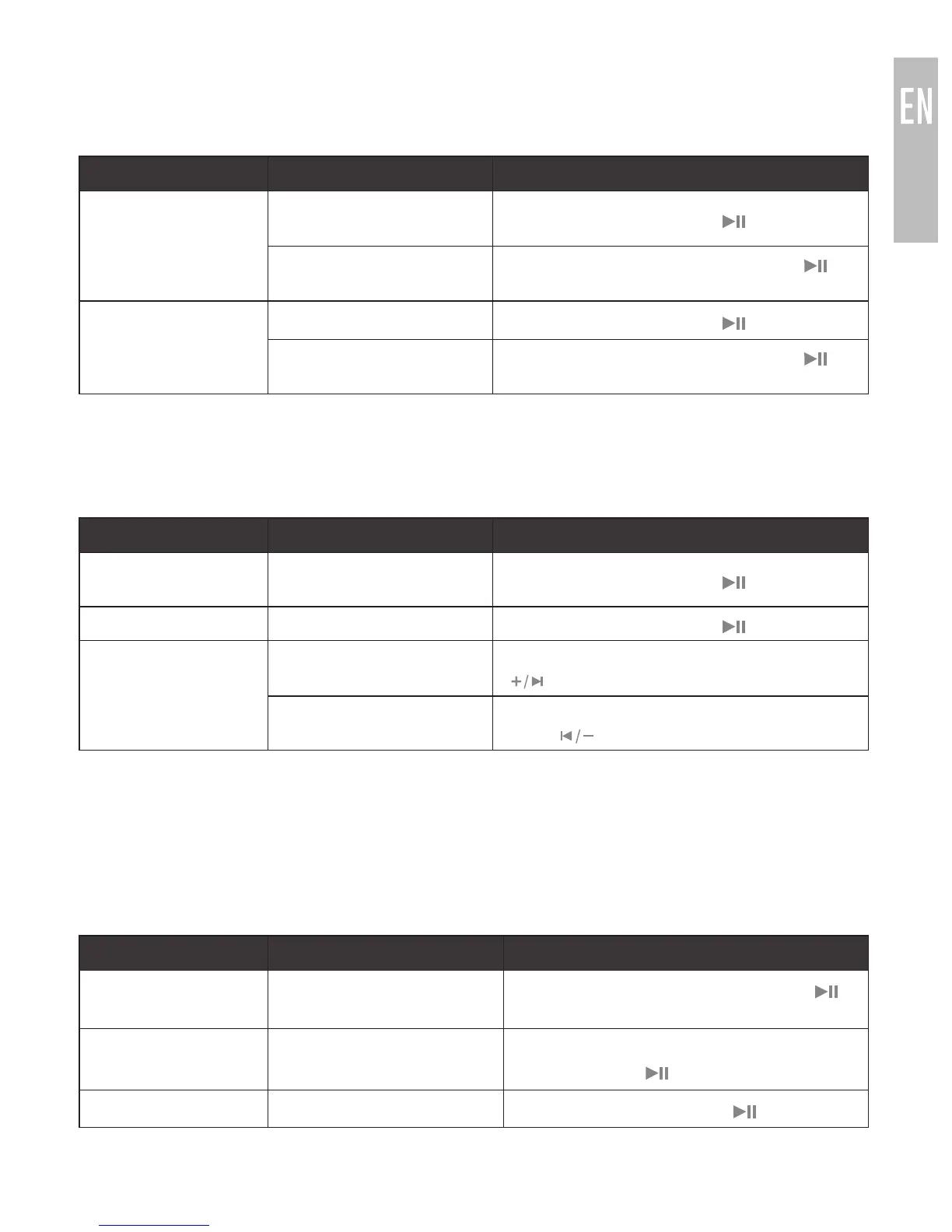 Media playing Pause media playback Press the