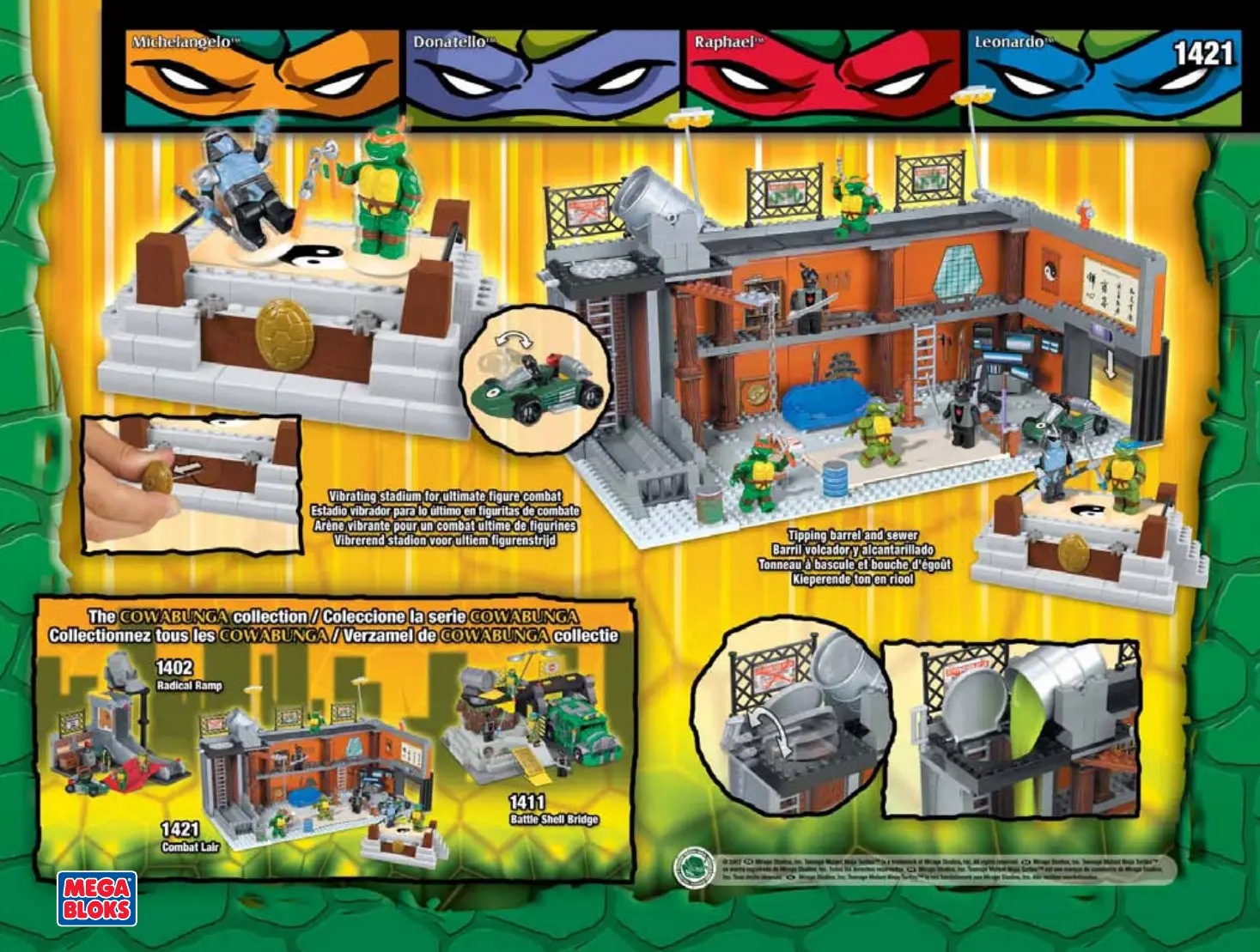 Mega Bloks 1421 - Final Model Showcase and Features; Key Play Features Highlighted; The Cowabunga Collection Overview