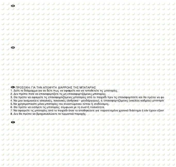 7. Tag batterierne ud, hvis legetøjet ikke skal bruges i længere tid eller hvis batterierne er udbrændte.