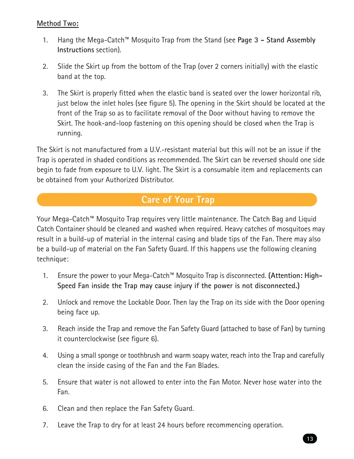 1. Hang the Mega-Catch Mosquito Trap from the Stand (see Page 3 - Stand Assembly