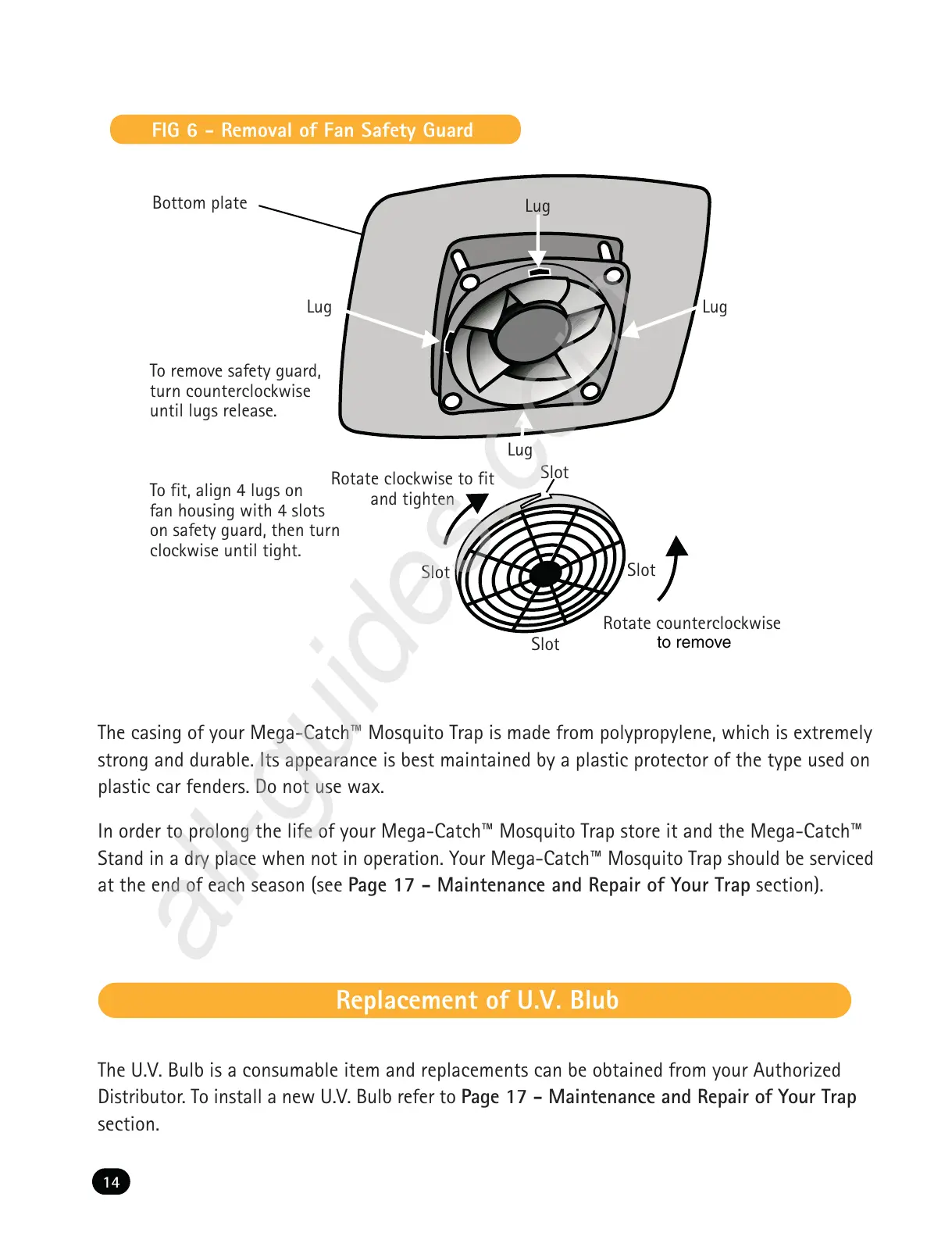 Distributor. To install a new U.V. Bulb refer to Page 17 - Maintenance and Repair of Your Trap