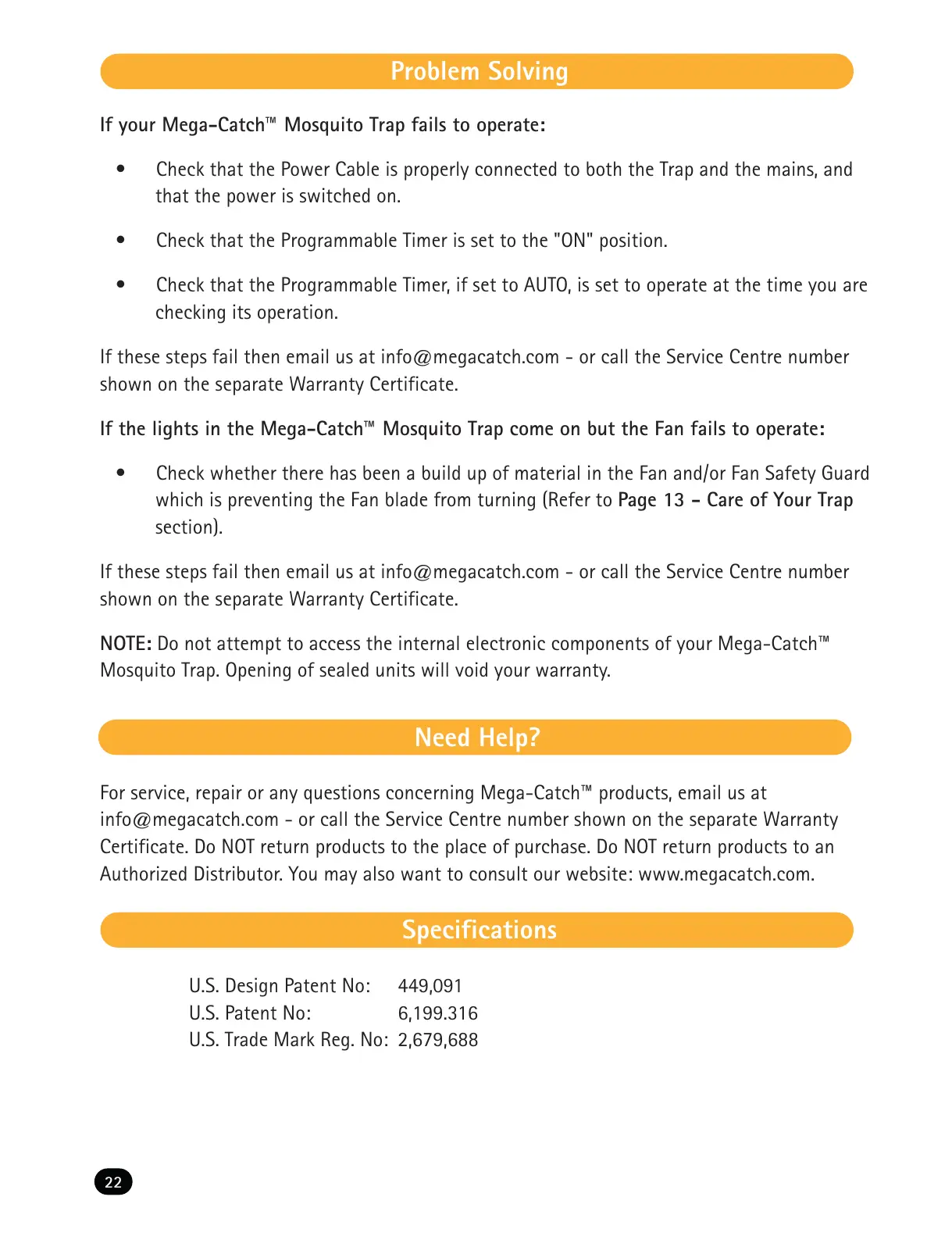 For service, repair or any questions concerning Mega-Catch products, email us at