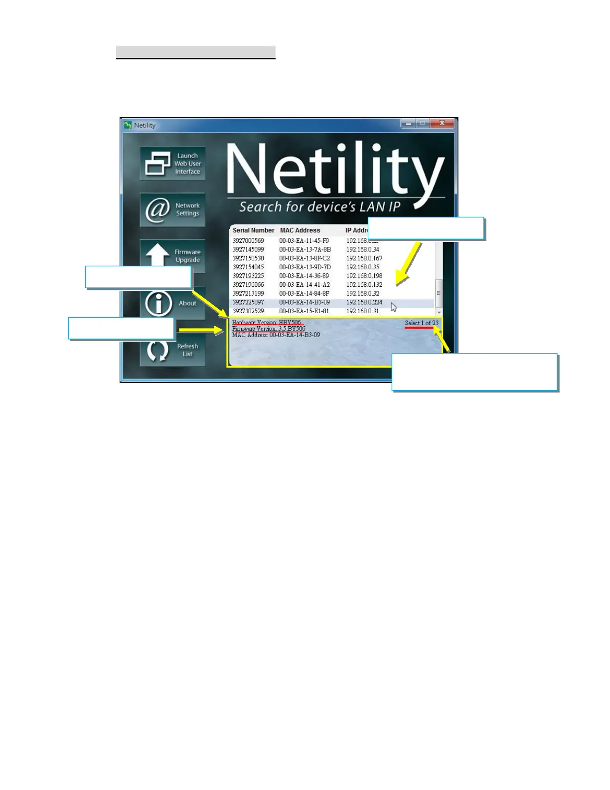 and MAC address. It also shows the total NetAgentA number that found by Netility and