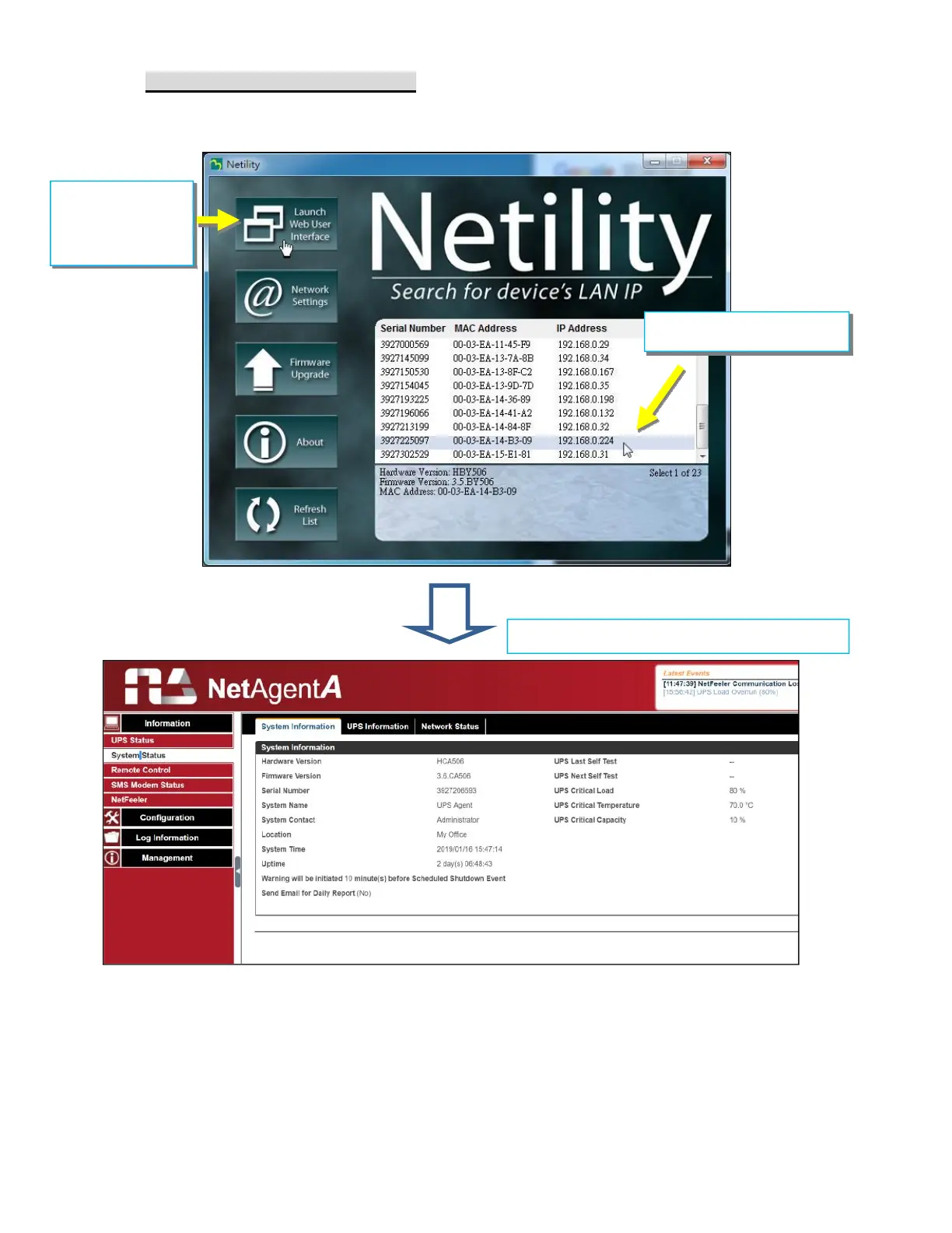 Select specific NetAgentA from the list and click on Launch Web User Interface to