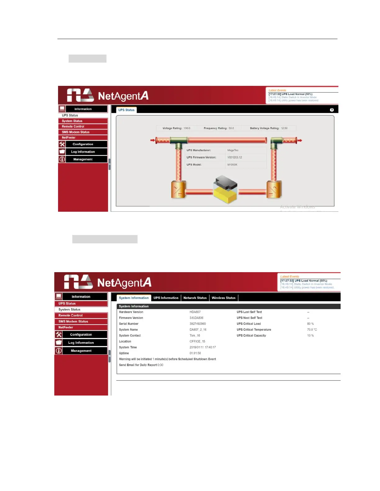 Here shows all the basic information of the NetAgentA such as hardware / firmware
