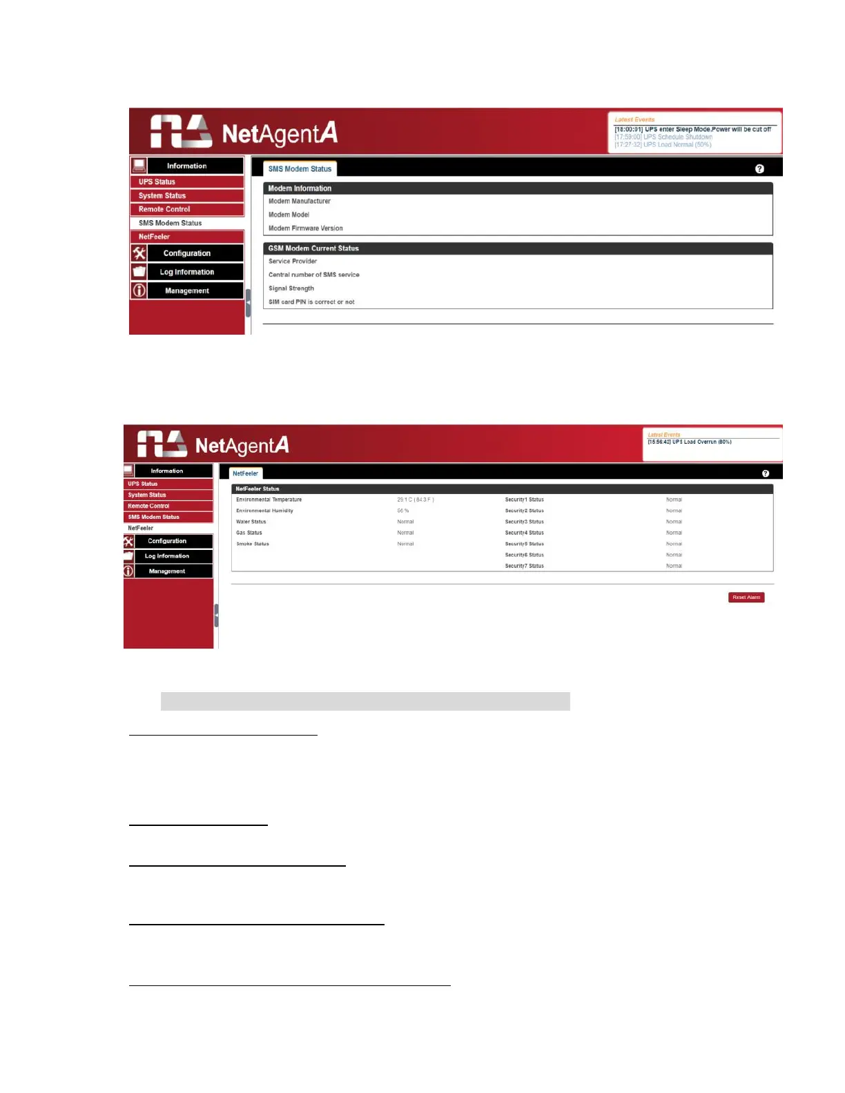 This page shows the Modem status when GPRS modem is connecting with NetAgentA