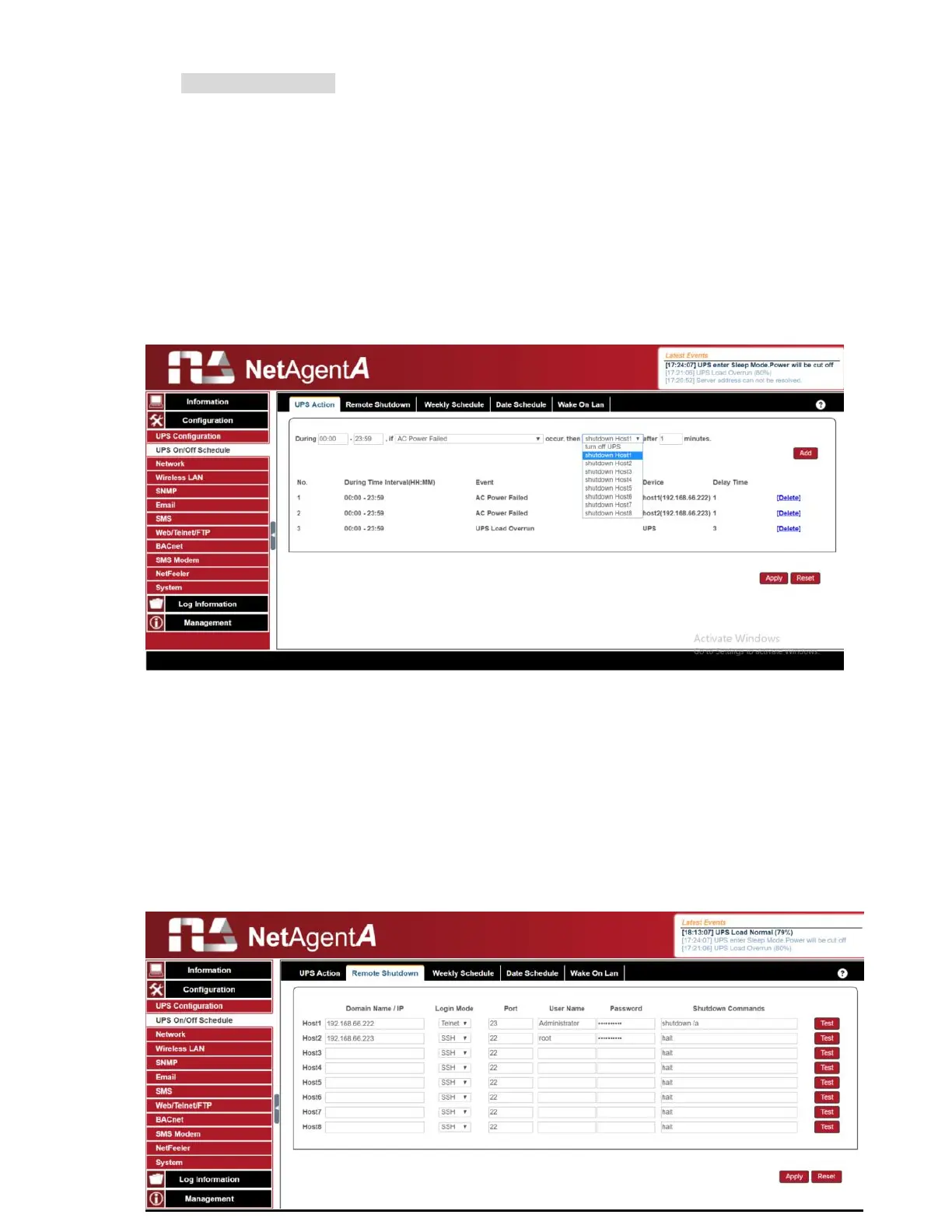 shutdown software. Event needs to be adding under UPS Action first and then enter the IP