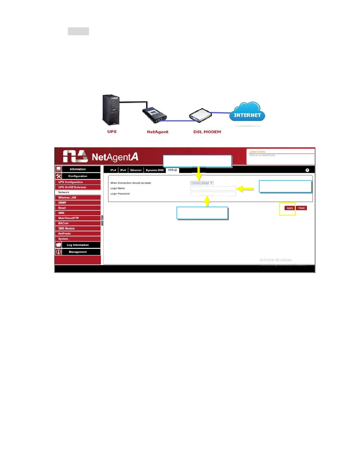 set-up, NetAgentA will connect directly to the Internet , any abnormal connection failure