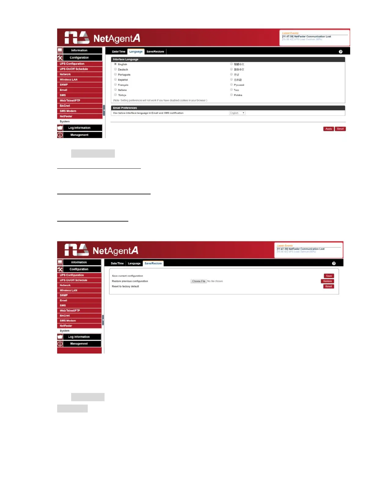 Use this function to restore a *.cfg configuration that has been saved earlier. Click