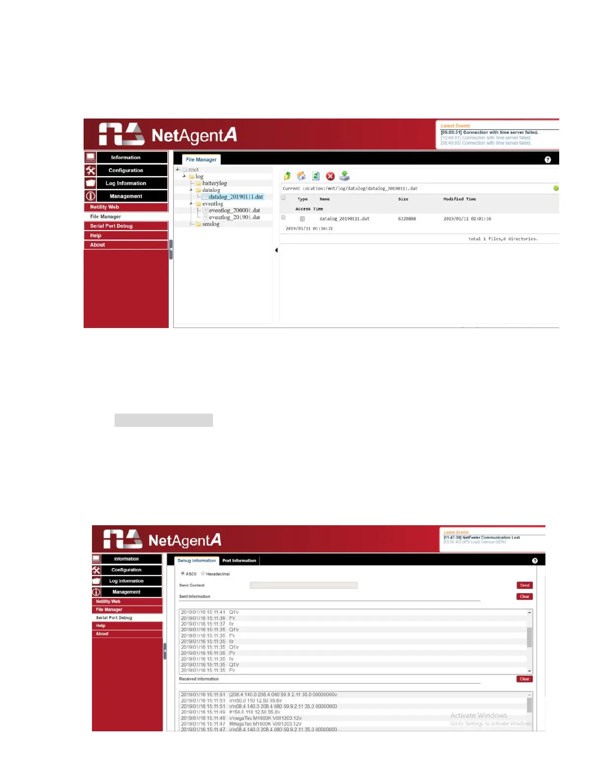 This is manage log file generates by NetAgentA. Specific log.dat can be download, delete.