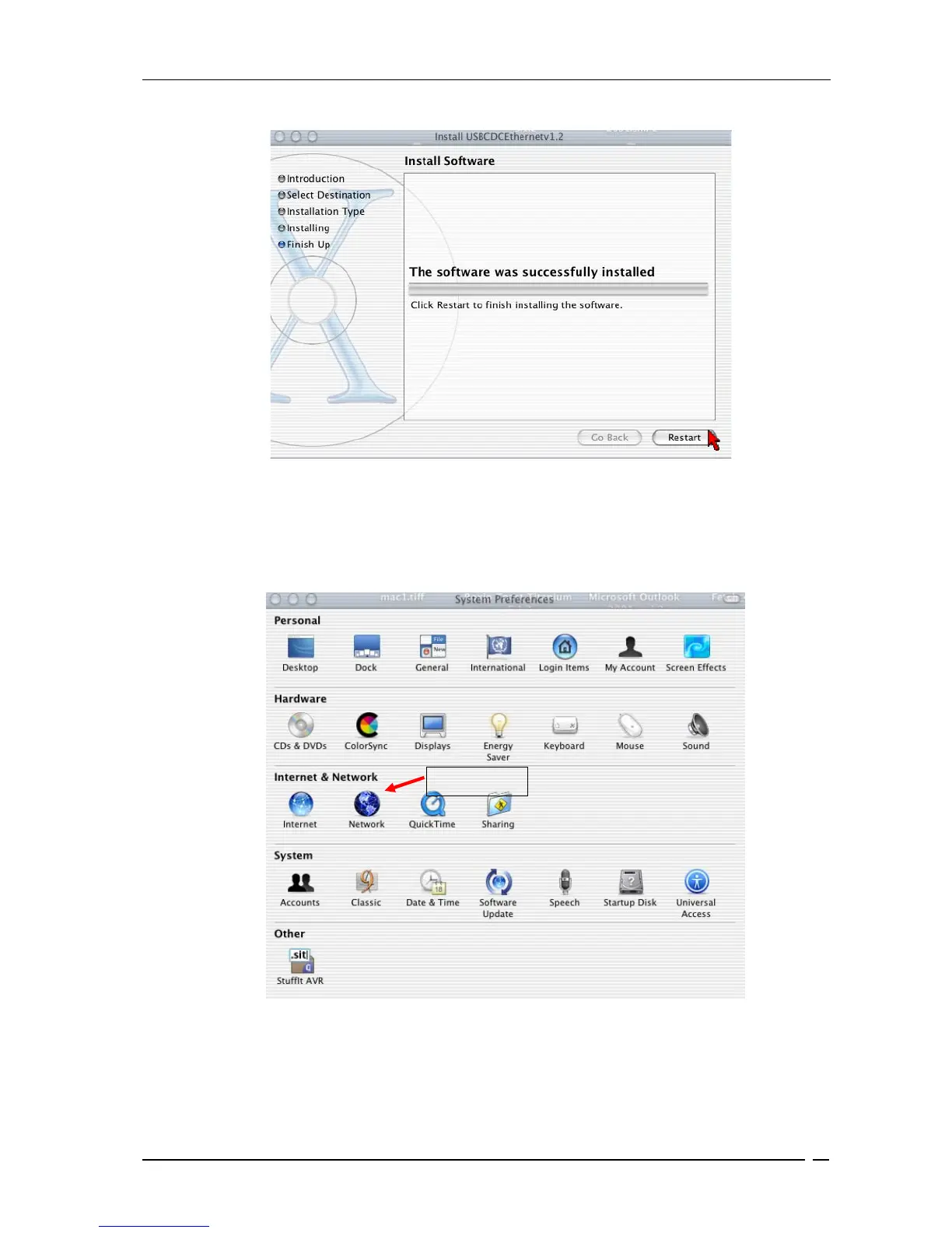 • The system will reboot. Select System Preferences from the dock. Select Network, as
