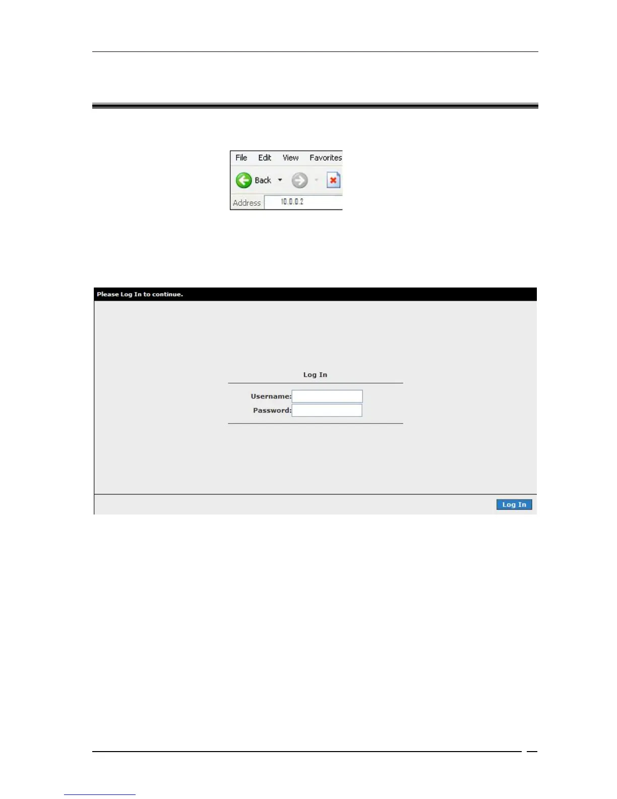 Open your web browser and key in 10.0.0.2 at the address bar and hit <Enter> . See Fig 9-1.