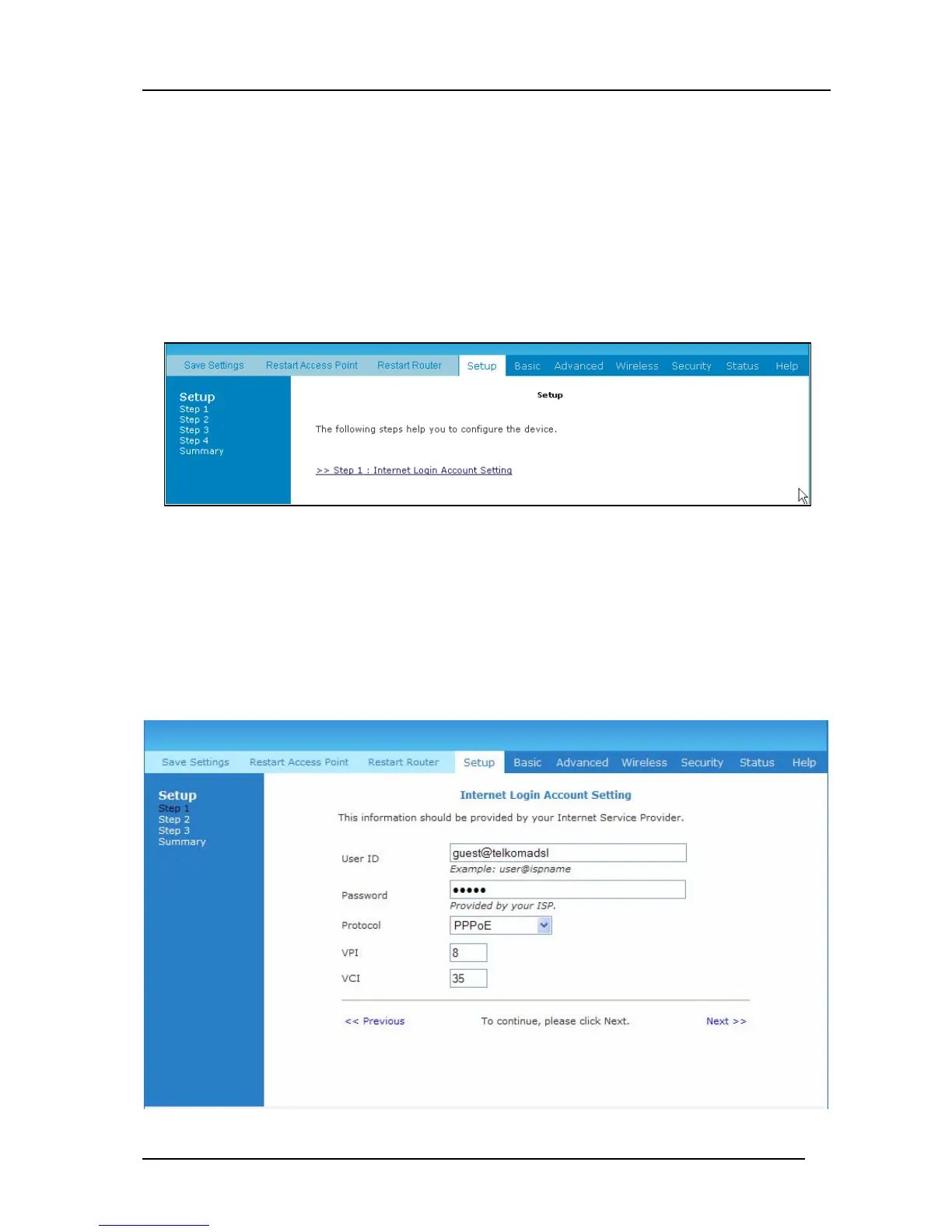 settings of your account. Please do not change the Protocol, VPI and VCI information