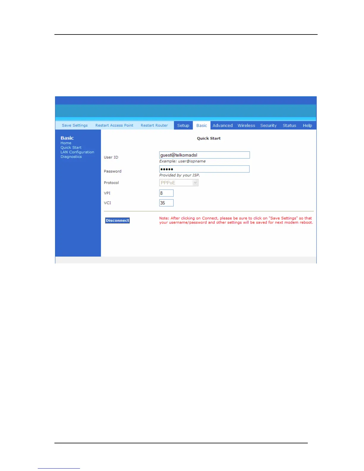 If you wish to change your current configuration, click on the āQuick Startā link. Figure 4-9