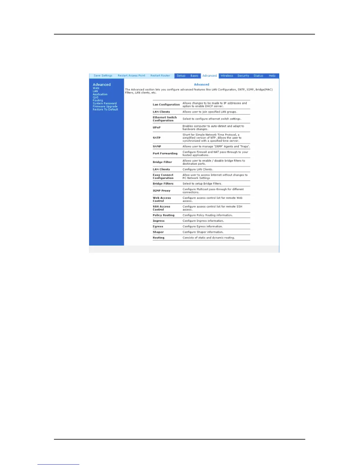 Figure 4-15: Advanced Screen