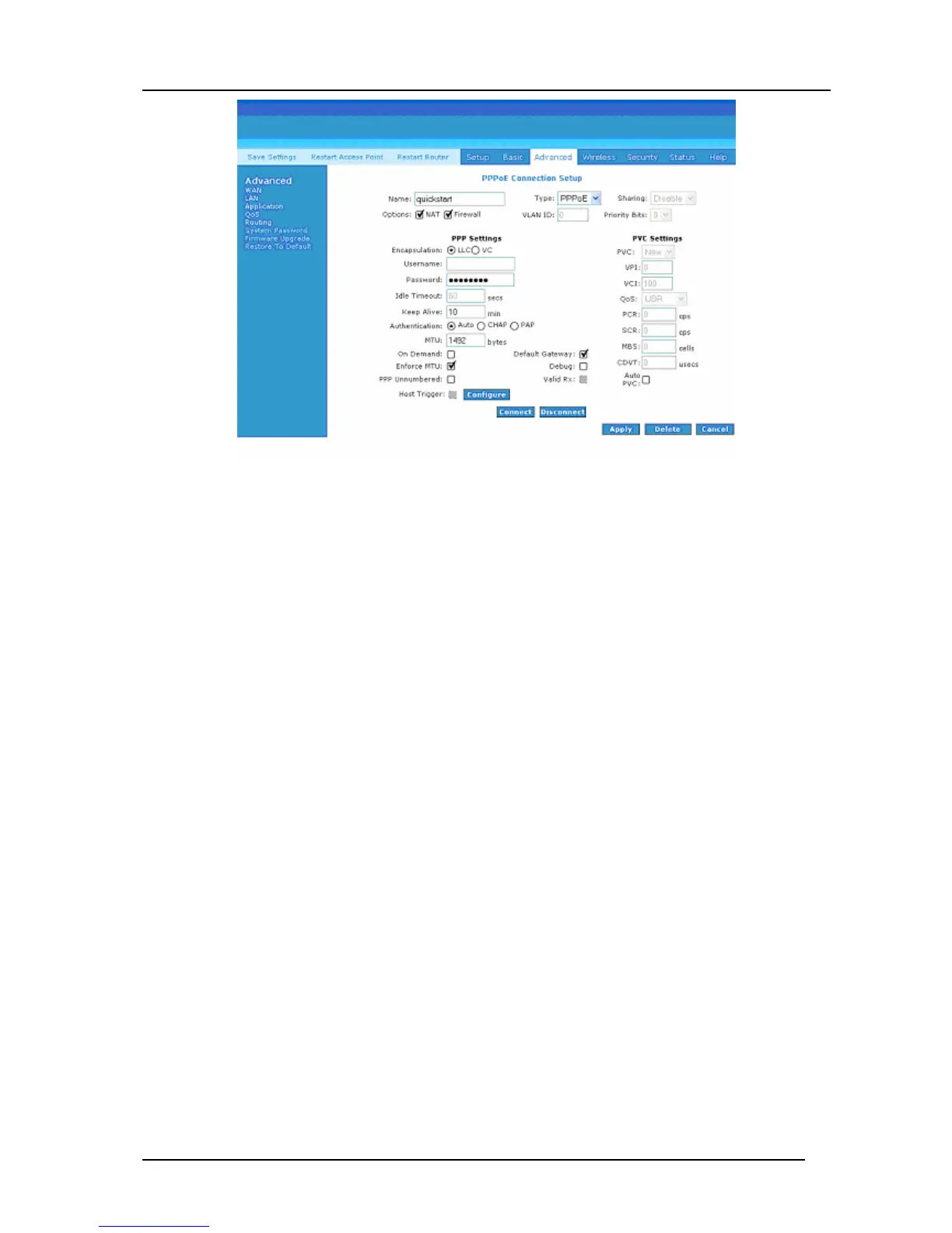 Figure 4-18: Quickstart (PPPoE Connection Setup)