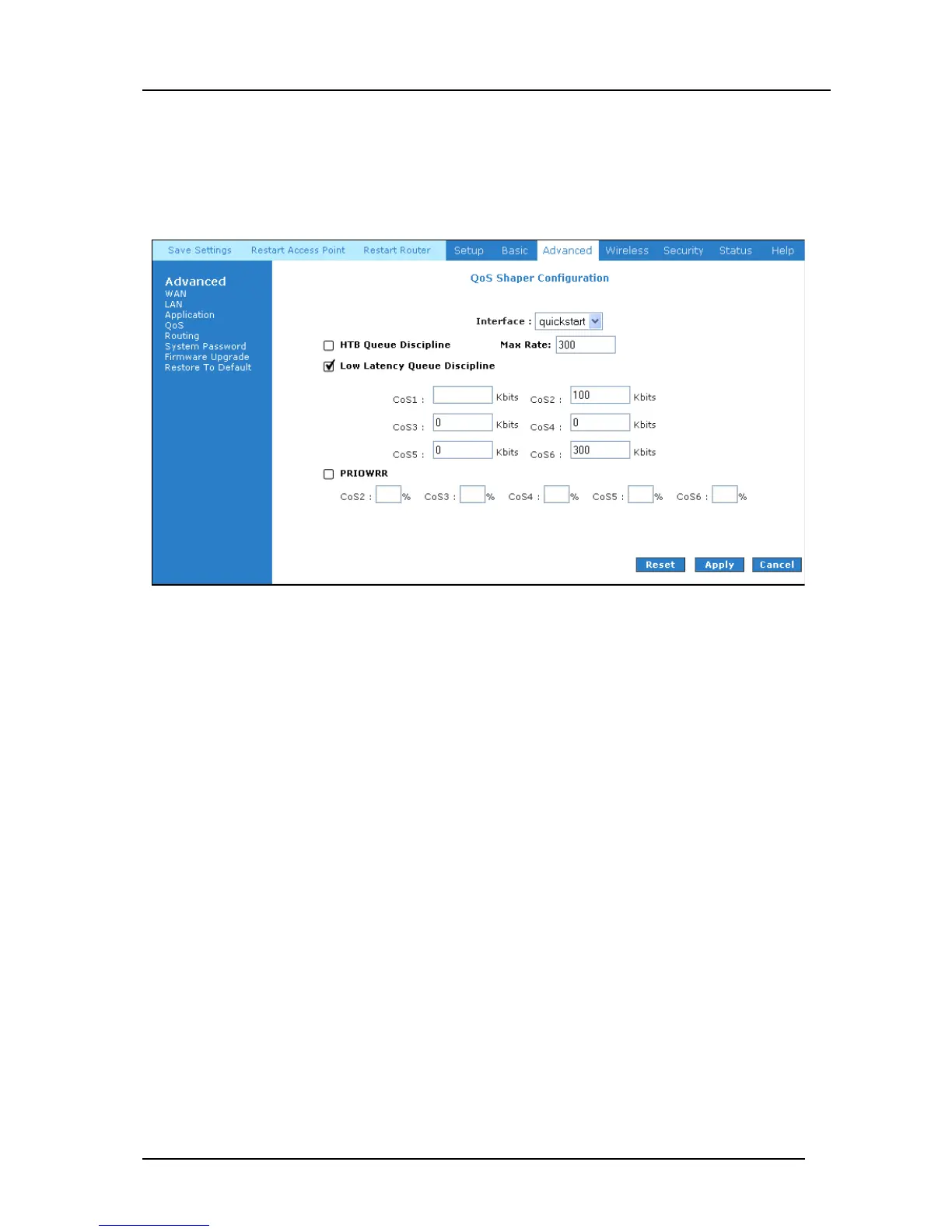 packets. CoS6 has 300 kbits when there are no CoS1 or CoS2 packets. This is similar to the HTB