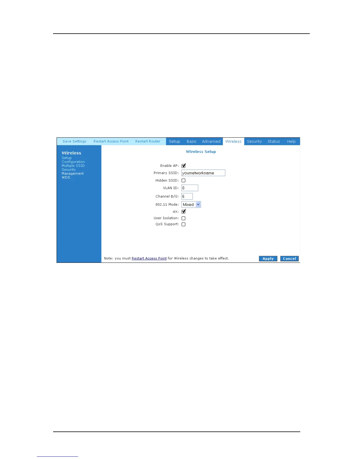 to establish a wireless connection. The SSID default is set to āyournetworknameā. It can