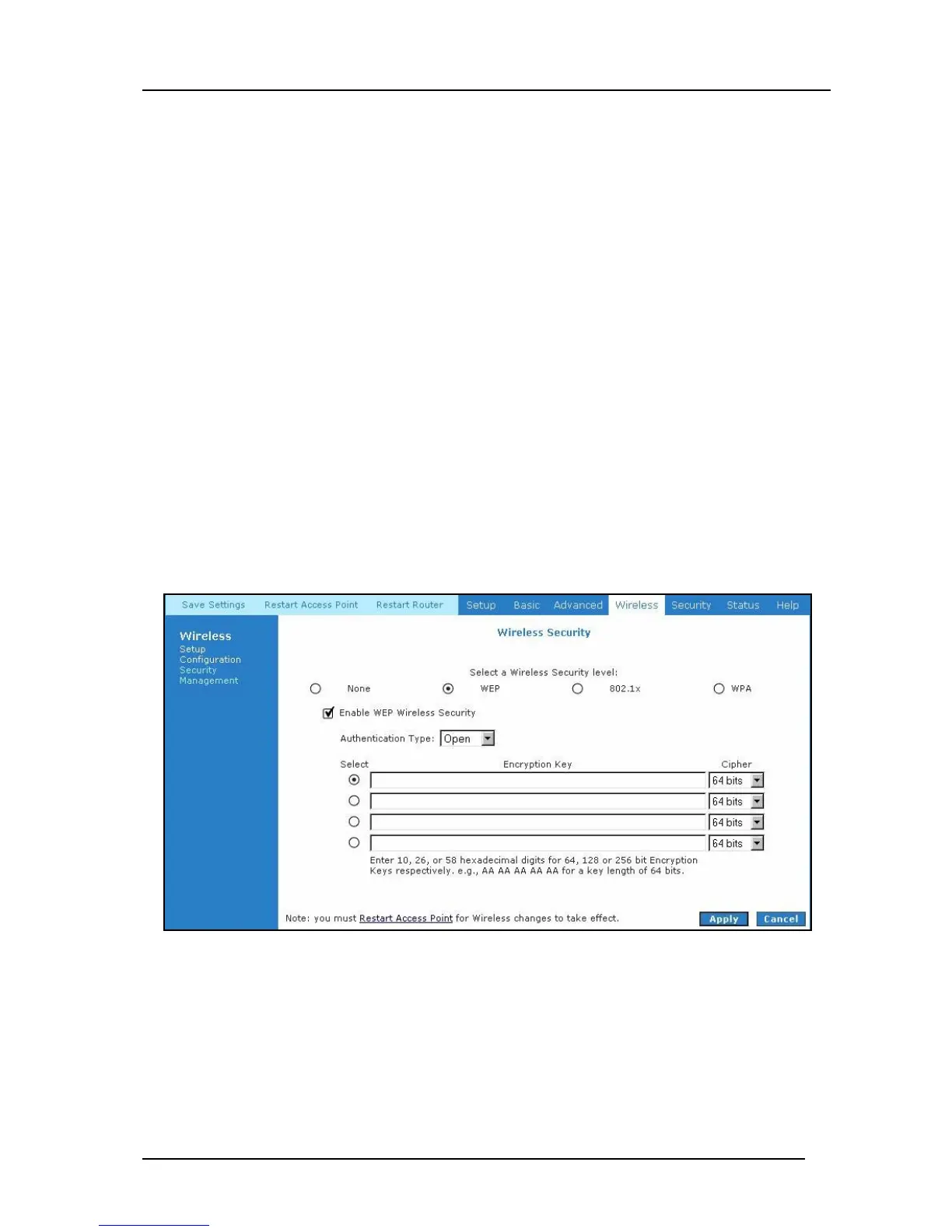 The router supports three levels of WEP encryption: