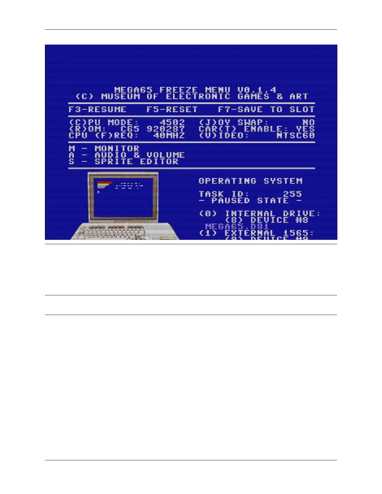 reside on a modern SD memory card. You can use the Freeze menu to tell MEGA65 whether to use the physical drive