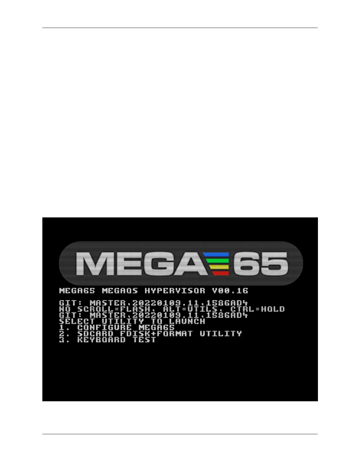 To start the configuration utility, turn off your MEGA65, then hold the Alt key (top row near the left) and turn it on.