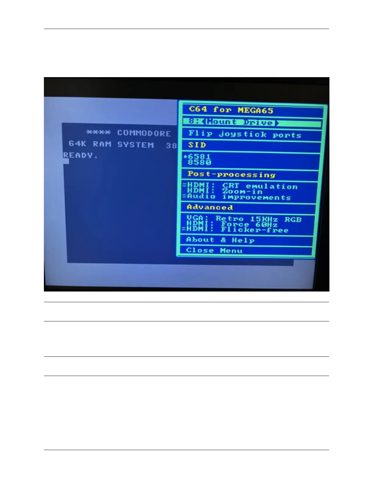 See the Commodore 64 for MEGA65 manual for more information.