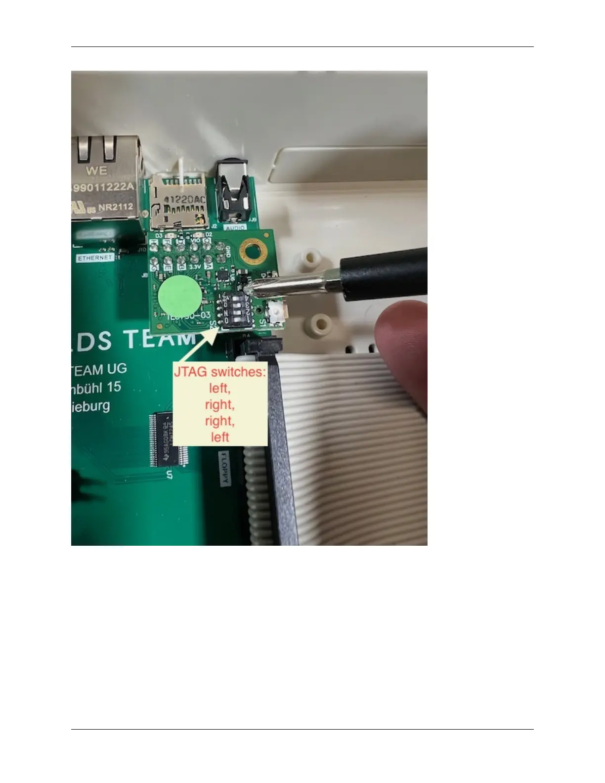 Connect a mini-USB cable to the JTAG connector, and run the cable out the back of the MEGA65 case. You can feed