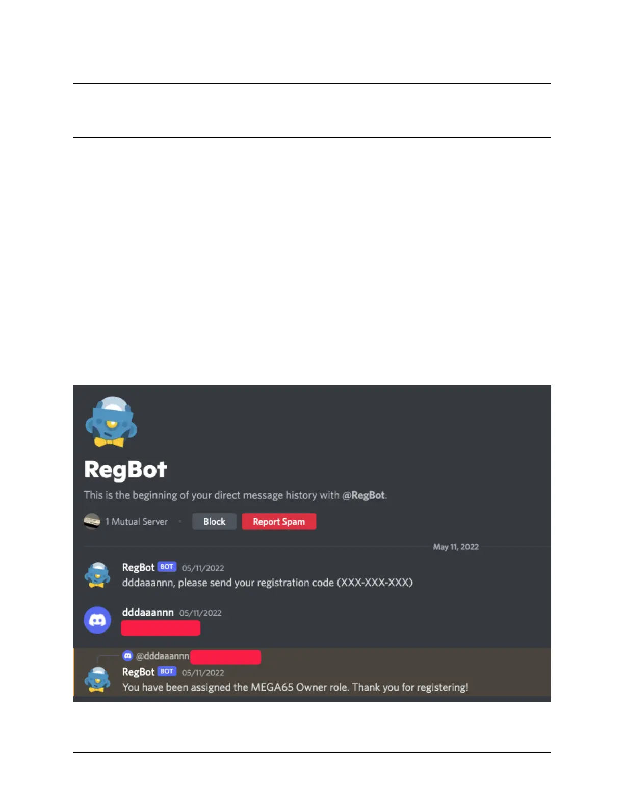 and send you a direct message asking for your registration code. Reply with your nine-character registration code from