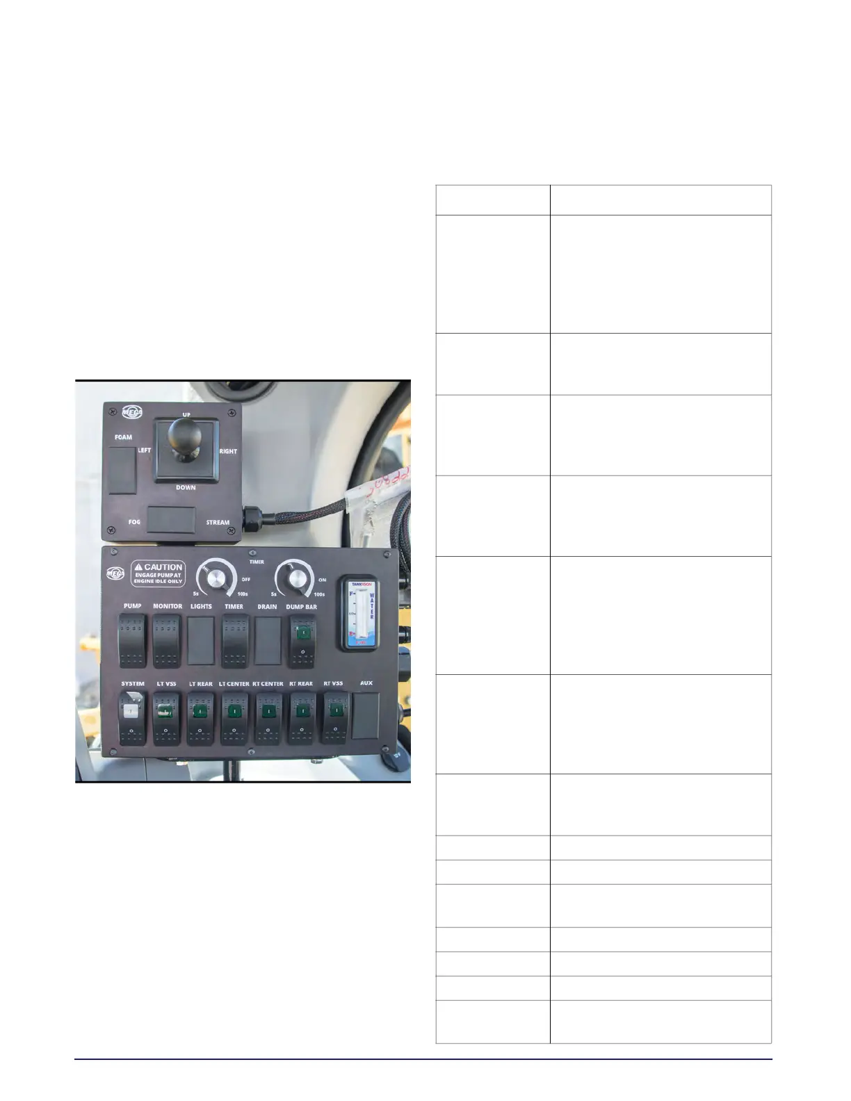 vehicle cab to control all water tank functions.