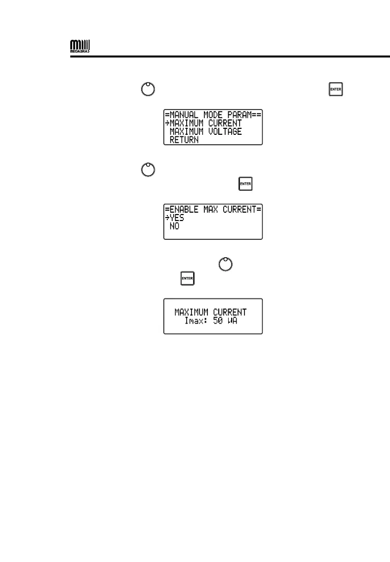 • Use the control , to select MAXIMUM CURRENT and press .