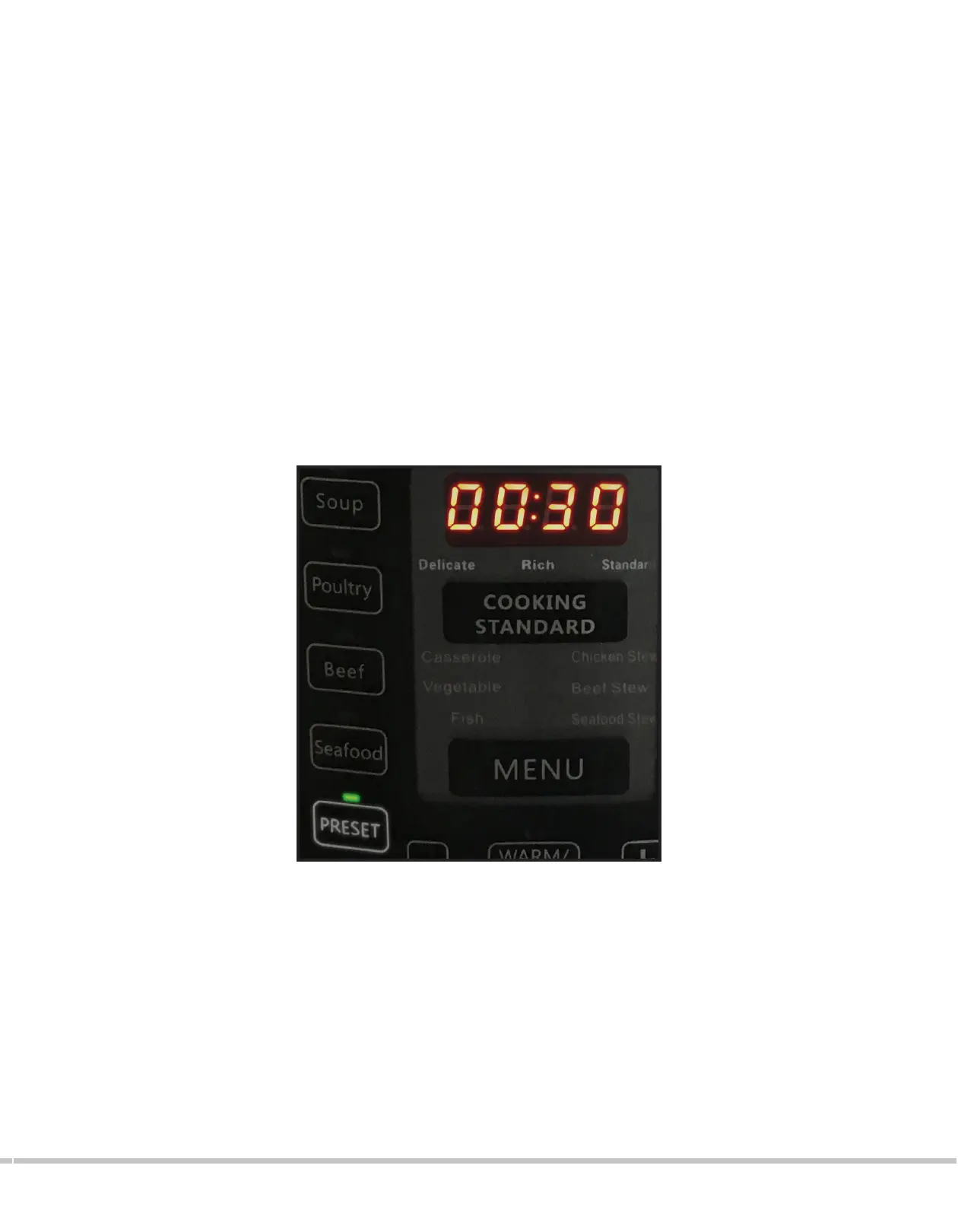 1. Press the “PRESET” button. A green light will indicate that this mode has been selected.