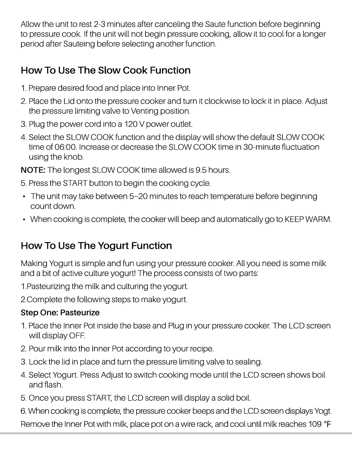 MegaChef MCPR6100 - Specialty Cooking Functions; Slow Cook Function Guide; Yogurt Making Process