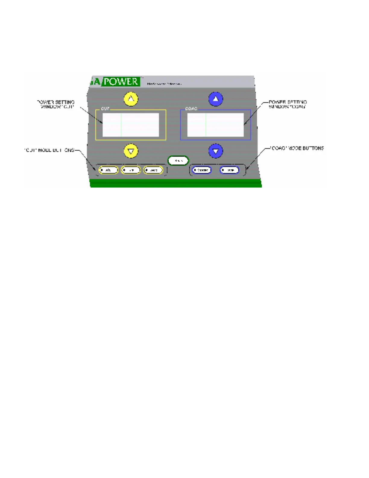 Modes: Select the proper mode for monopolar “CUT” and “COAG” by depressing the