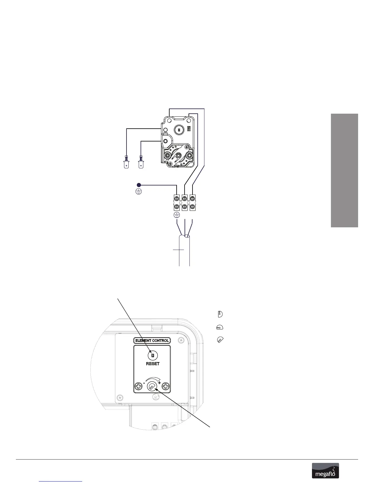 Figure 15- Schematic wiring diagram - Direct immersion heater with adjustment details