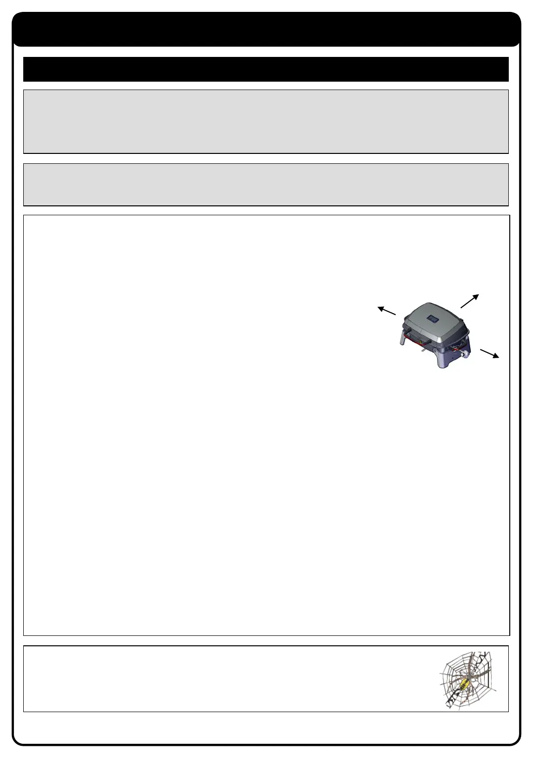 8. Carefully follow instructions in this manual for proper assembly and leak-testing of your grill. Do not