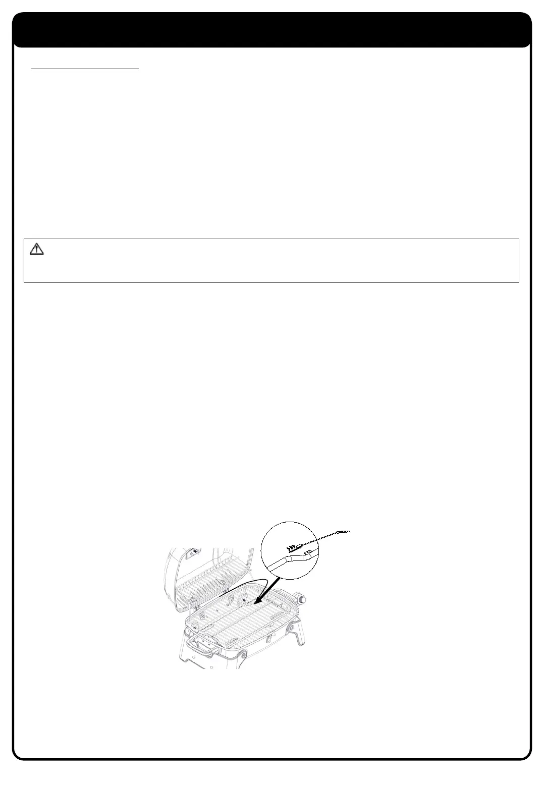 Attention: Ne pas essayer de rallumer le gril sans suivre toutes les instructions d’éclairage. Laissez le