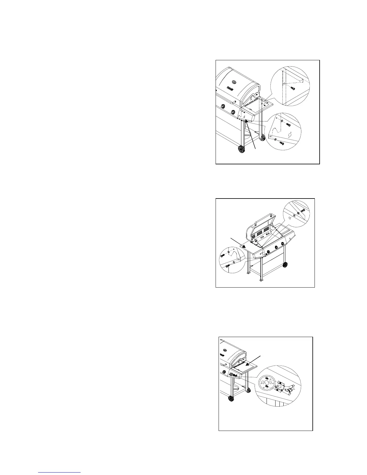 to attach the Side Burner Shelf (D) to the main firebox.