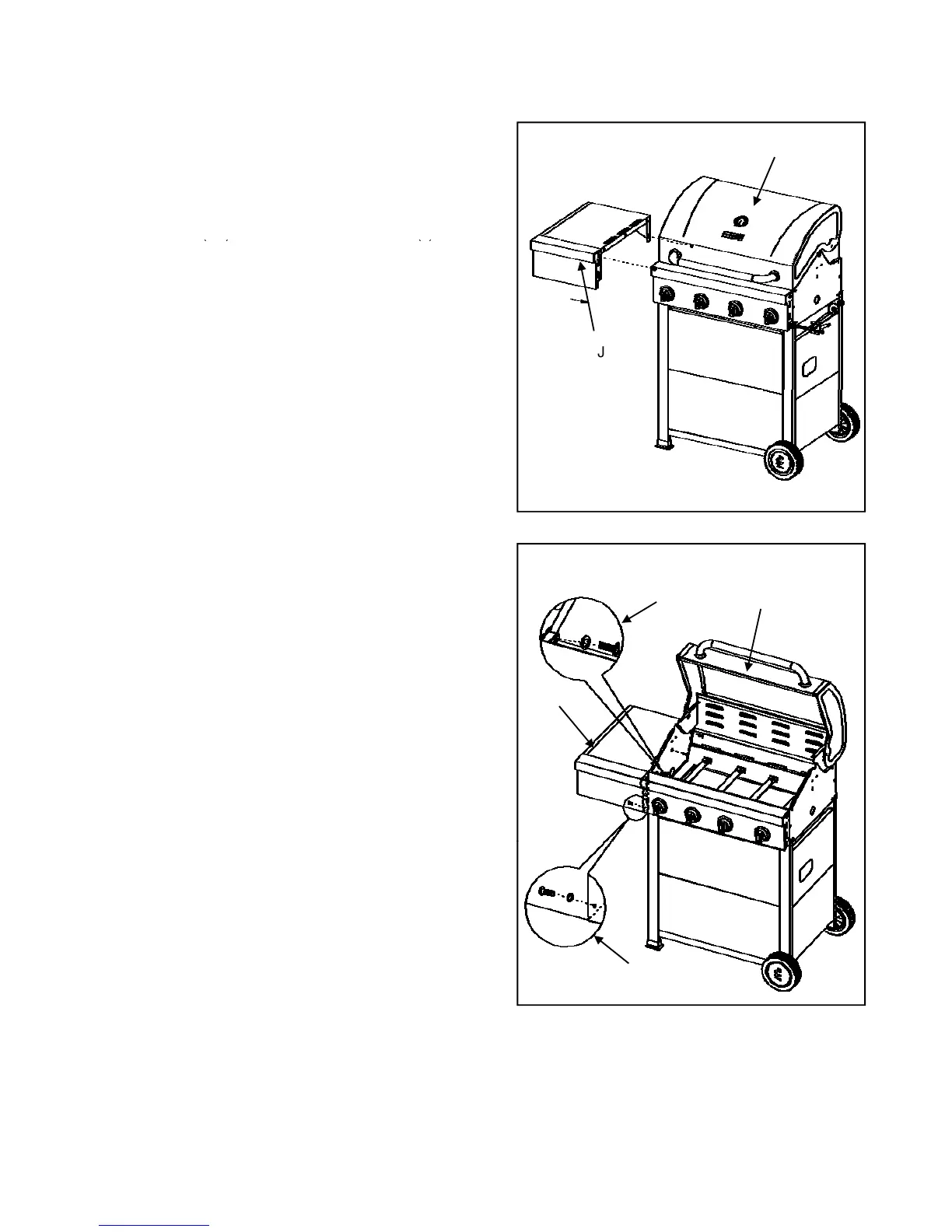 and secure the Side Shelf Left (J) from inside firebox by
