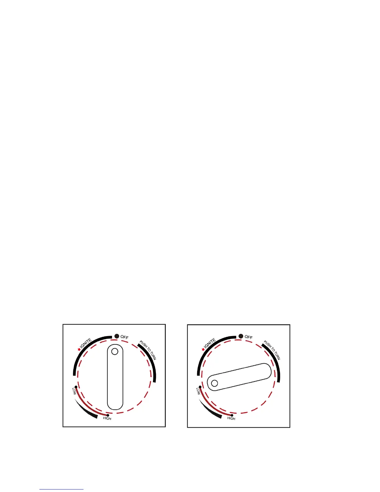 a) Push in gas control knob and turn counter clockwise to the "LOW" position.