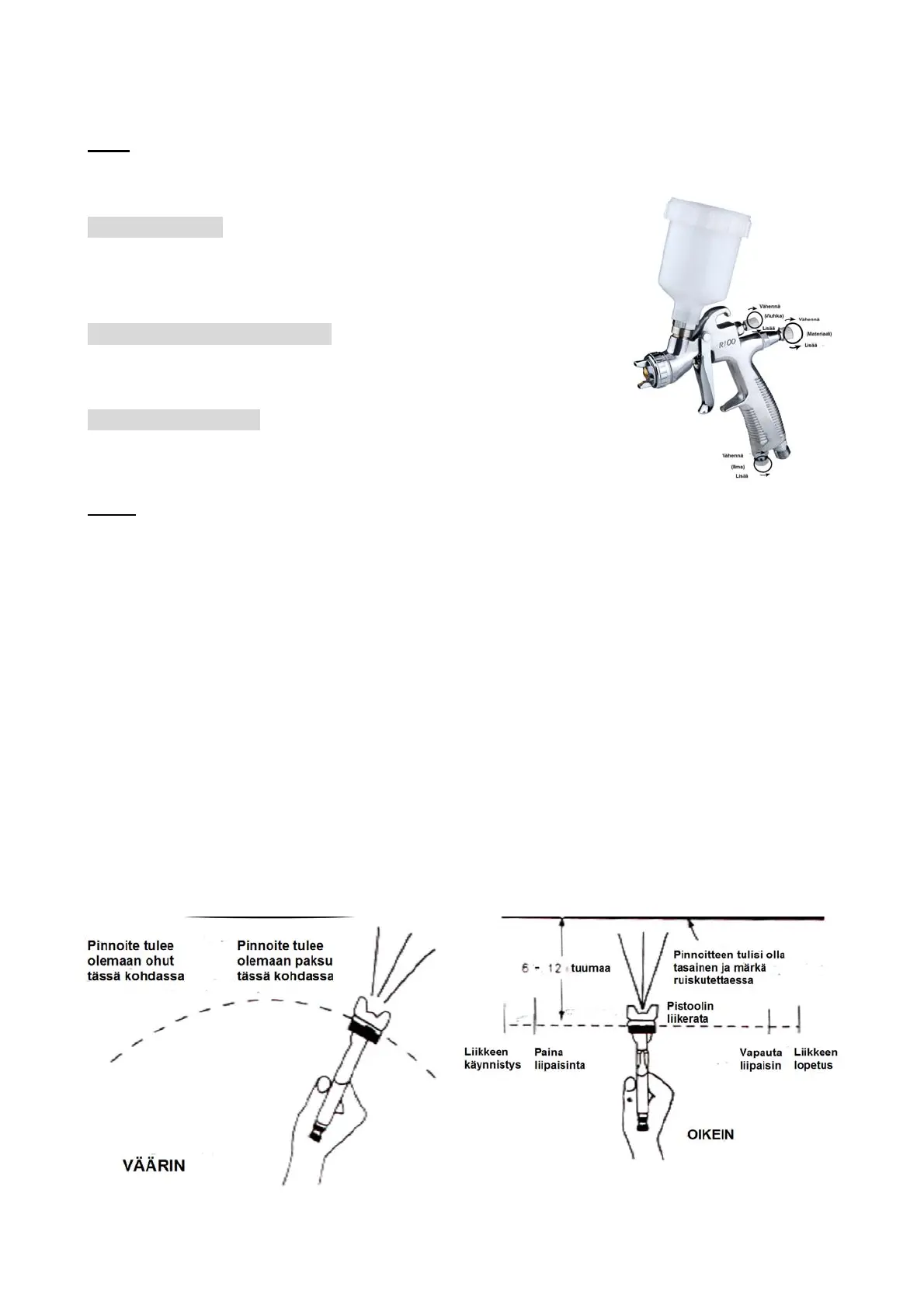 ken liikkeen aiheuttaa maalin kasaumista ja heikentää lopputulosta. Älä liikuta pistoolia liian nopeasti sivul-