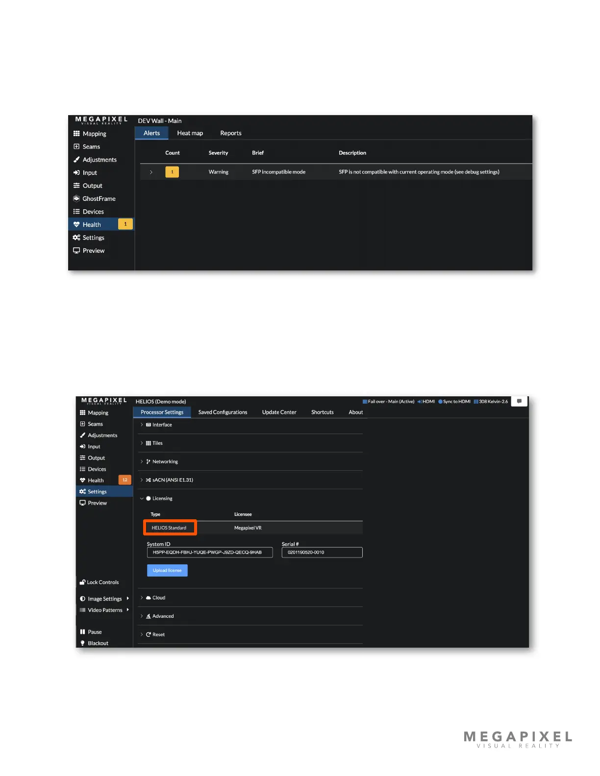 1. Check the system settings for the license type. A HELIOS Standard license enables both copper and ber SFP+