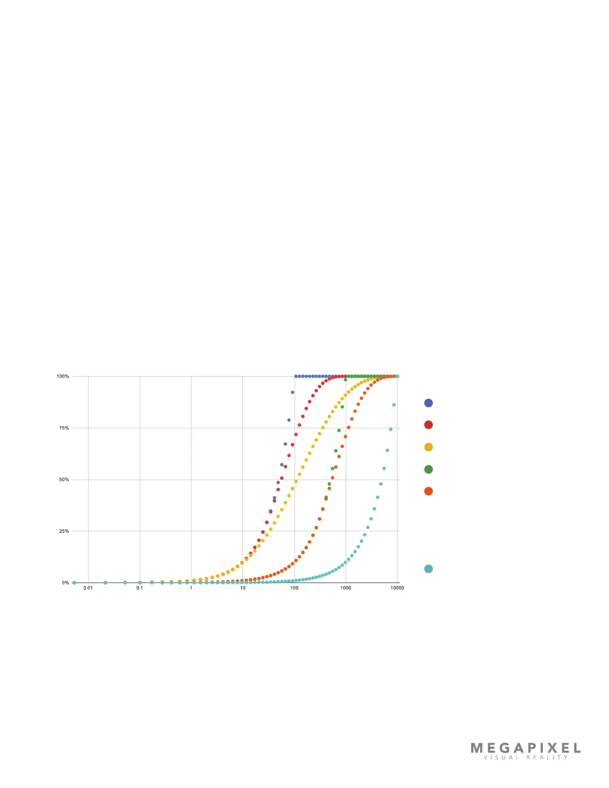 levels. The same holds true with the yellow dot scenario, in which a low luminance panel (100L) is given a very wide luminance