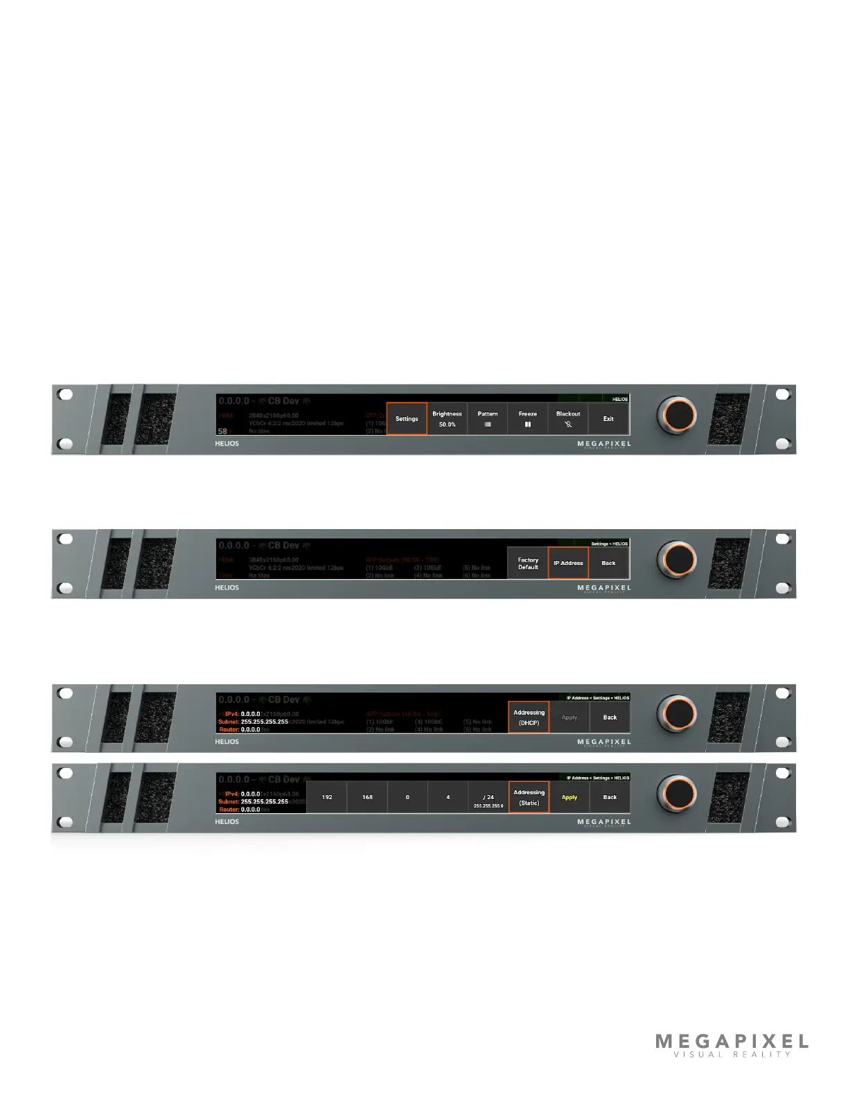 The IP address of the HELIOS can be set using the front panel interface.