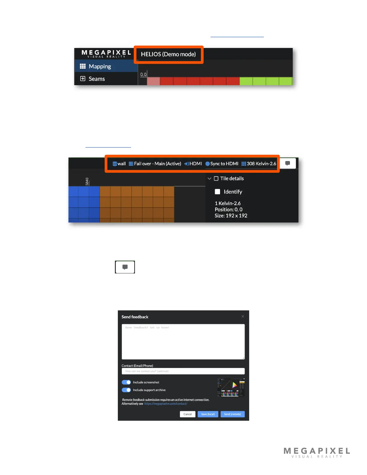 sync signal, and connected panels. Blue indicates good system health. Yellow is an alert, and red is a warning of a critical