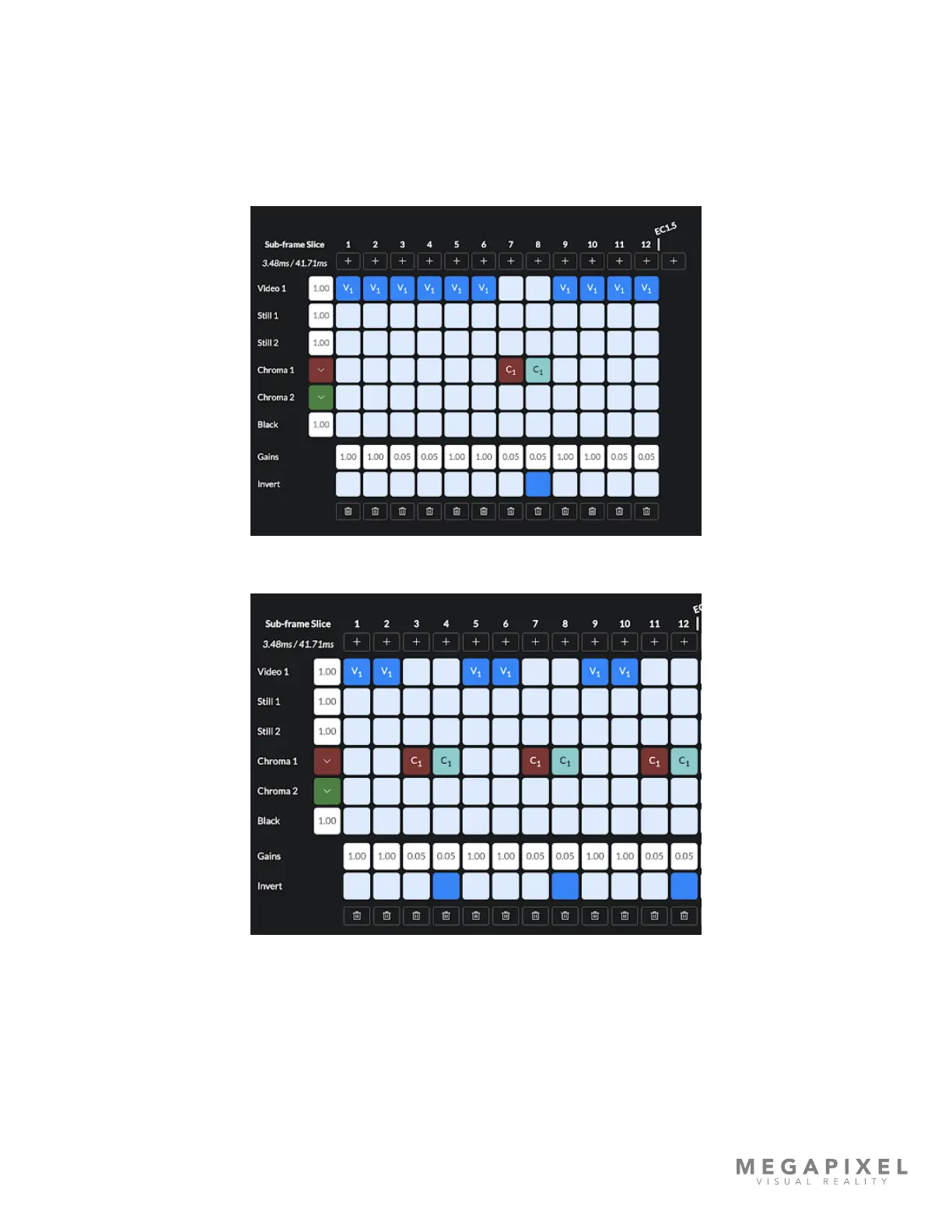 audience an unpleasant strobing effect. This is due to 10x ‘Video 1’ slices in a row then 1 Chroma + 1 Chroma Inverted. To