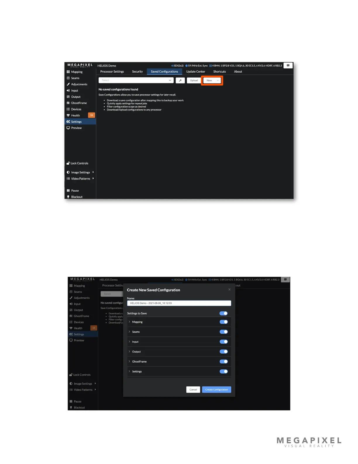 Saved Conguration with specic input settings enabled and upload to each processor.